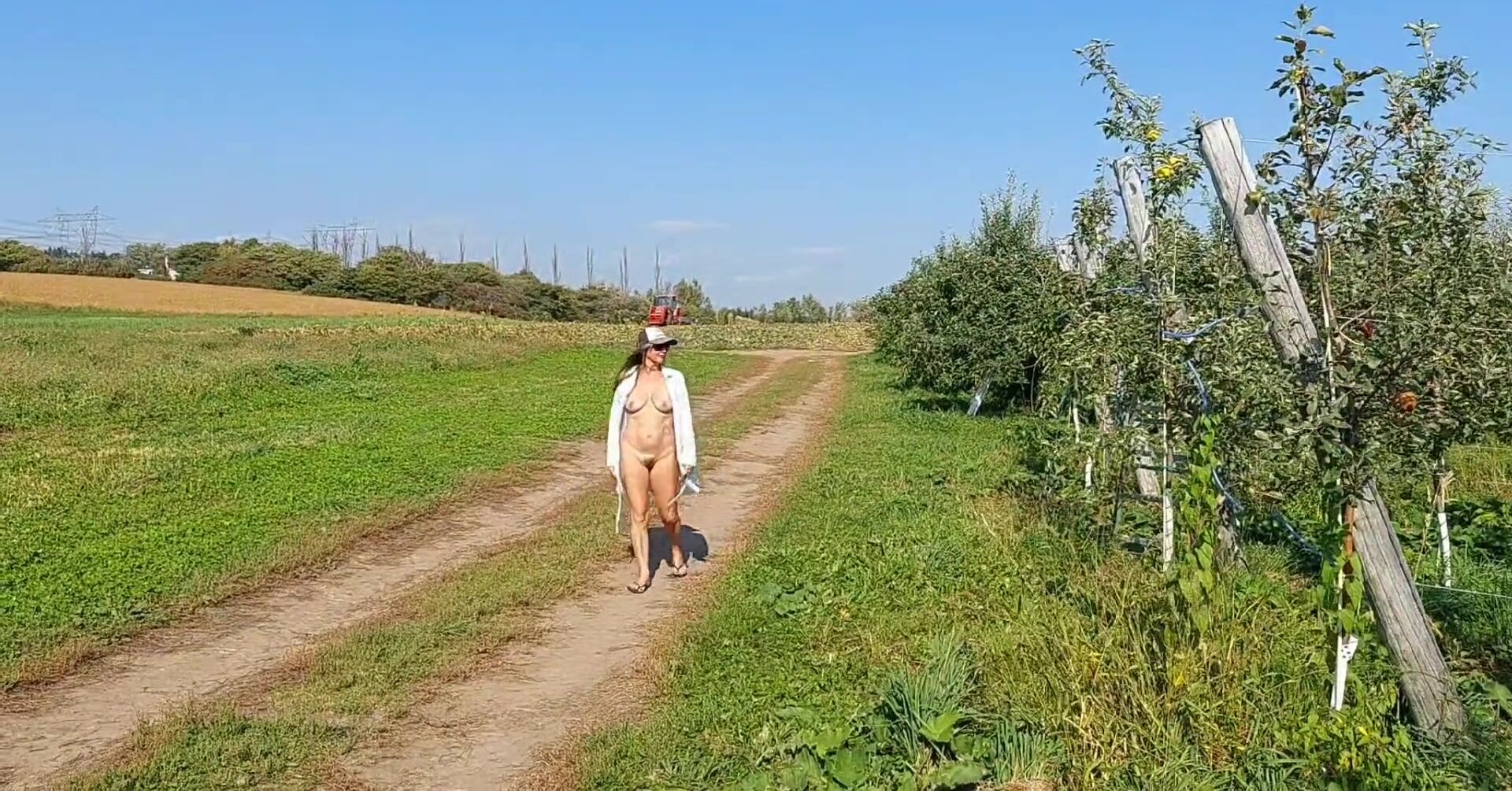 WALKING NAKED IN A ORCHARD AND PICK APPLES!