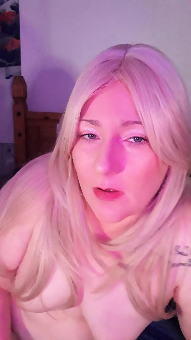 KATE THE HOTWIFE AND A BLUE AND PINK DILDO